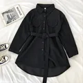 Limited Price Corduroy Long Sleeve Dress Women Solid Buttons Pockets Turn-down Collar Simple Elegant Sashes All-m with FREE Shipping Worldwide!