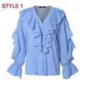 Cheap Price Plus Size Women Blouse Celmia 2020 Summer Ruffled Stylish Tops Sexy V neck Long Sleeve Shirt Female with FREE Worldwide Shipping!