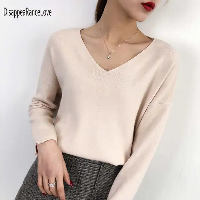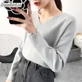 DRL Autumn Winter Female Pullovers V Neck 2019 New Casual Long Sleeve Fashion Sweet Loose Sweater For Women Warm Knitted Jumper