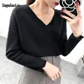 New 2019 Autumn Winter Casual Jumper Tops V Neck Knitting Winter Lace Sweater Women Fashion Long Sleeve Pullover Female