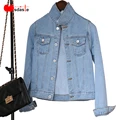2019 Women Short Basical Jeans Jacket Coat Bleach Full Sleeves Single Breast Slim New Fashion Outerwear Women Denim Jacket Coats