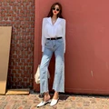 BGTEEVER Streetwear High Waist Double Buttons Split Women Jeans Pants Chic Straight Denim Pants Female Jeans 2020 Capris femme