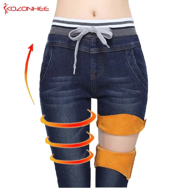 Limited Price Elasticity Cashmere Warm Jeans for women Large Black Jeans With High Waist Elastic Waist jeans fema with Free Shipping Worldwide!