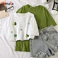 Korean cartoon Embroidery Loose All-match t shirt summer Short Sleeve Simple T-shirts Women harajuku Kawaii Candy colors tshirt