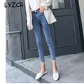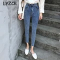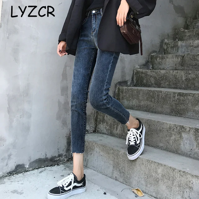 Best Offer LYZCR High Waist Denim Stretch Jeans Women Spring 2020 Vintage Skinny Jeans Woman High Waist Jeans with Free Worldwide Shipping!