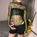 Sweetown Summer 2019 Kawaii Mesh Crop Top Tshirt Greek Mythology Angel Print See Through Top Women Sexy Transparent Beach Shirt