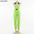Cheap Price Weirdgirl women bodysuits shoulder straps belt pocket solid green jumpsuits romper femme pants stre with Free Shipping Worldwide!