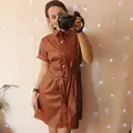 Special Price Women Pu Leather Sashes Mini Dress Office Ladies Turn Down Collar Short Sleeve Casual Dress 2020 Ne with FREE Shipping Worldwide!