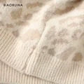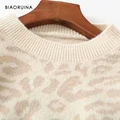 Limited Price BIAORUINA Women's Fashion Leopard Knit Sweater O-neck Female Casual Keep Warm Oversized Pullover La with FREE Worldwide Shipping!