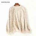 BIAORUINA Women's Sweet Heart-shaped Jacquard Beading O-neck All-match Knitted Sweater Female Fashion Loose Pullovers