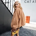 Simplee Winter lamb fur women jacket coat Furry turn down collar outerwear autumn jackets Zipper female short top overcoat 2019