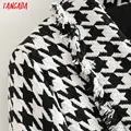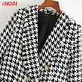 Tangada women warm winter double breasted suit jacket office ladies vintage plaid blazer pockets work wear outwear 3H154